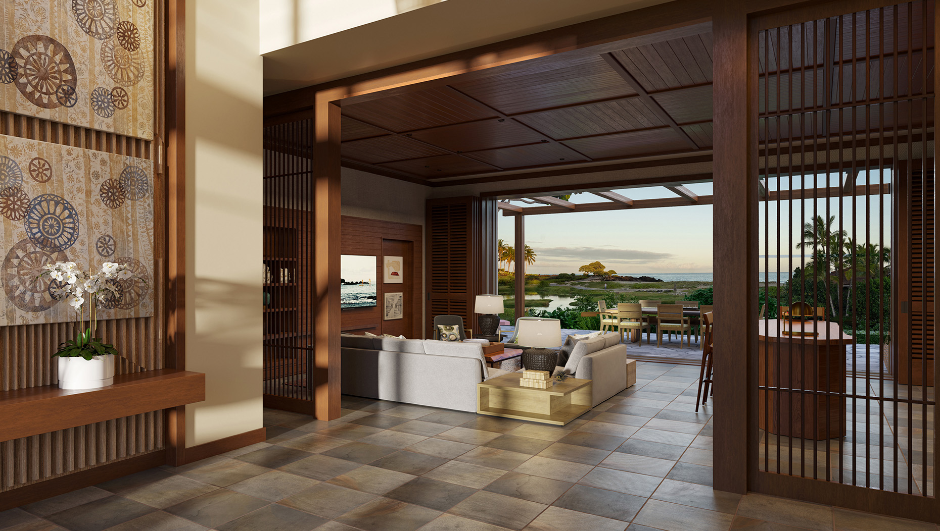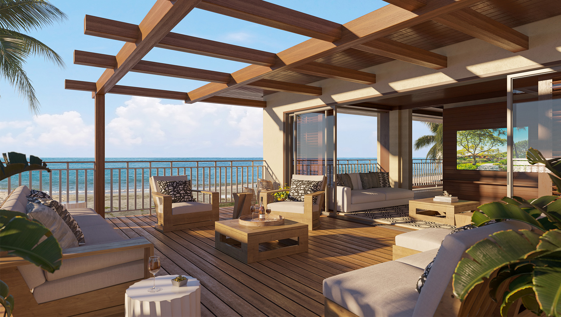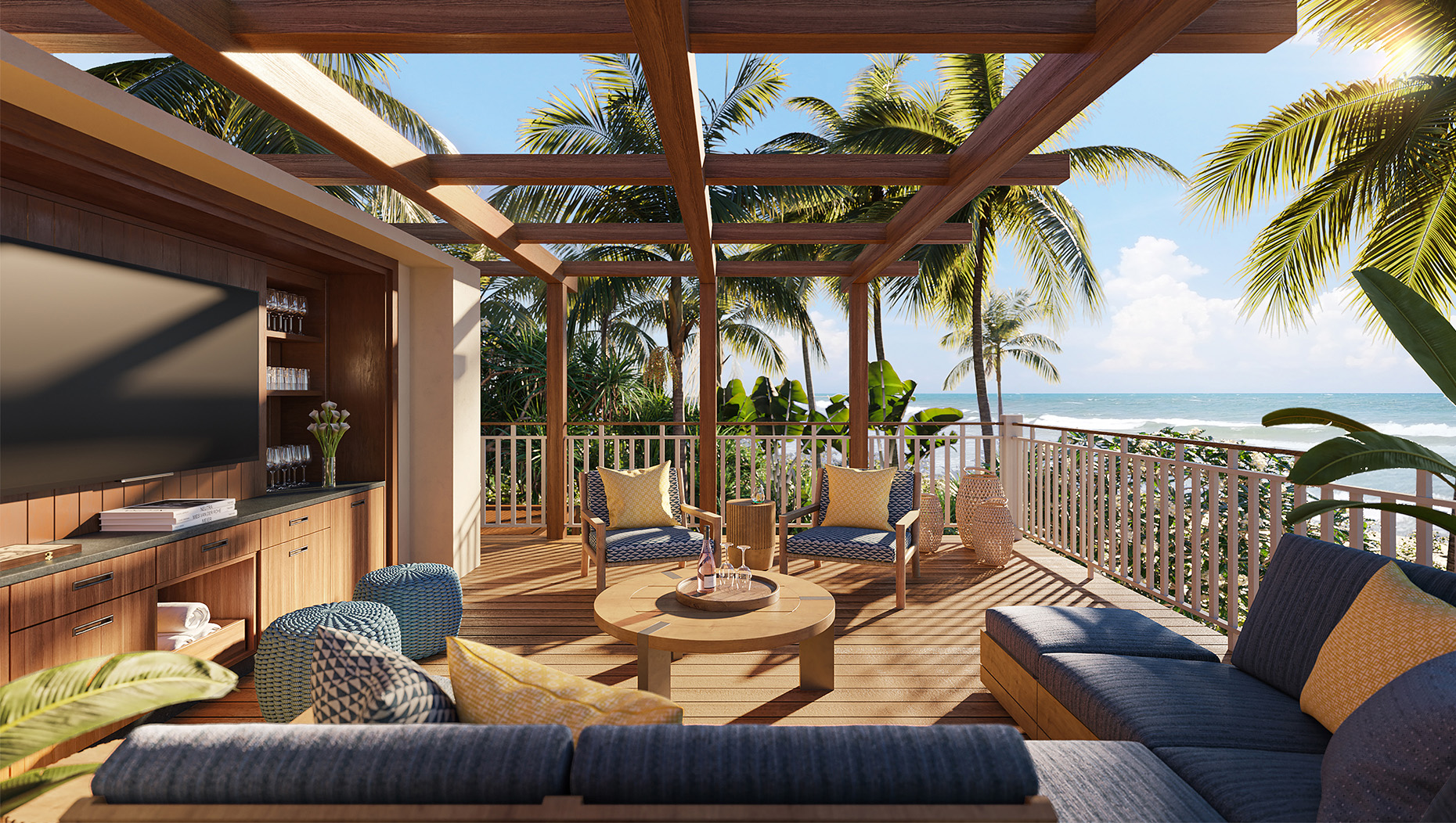 The casual beauty of a Hawaiian beach house with generous living, dining and gathering space, and three to five bedrooms for luxurious seclusion. Walls of windows open on the infinite panorama and invite the fresh breezes of the tradewinds indoors. A new second-level master bedroom and open living space elevate perspectives for all. A private pool and spa await in the expanded great lawn, a perfect stage for significant moments from formal weddings to romantic picnics to family croquet.