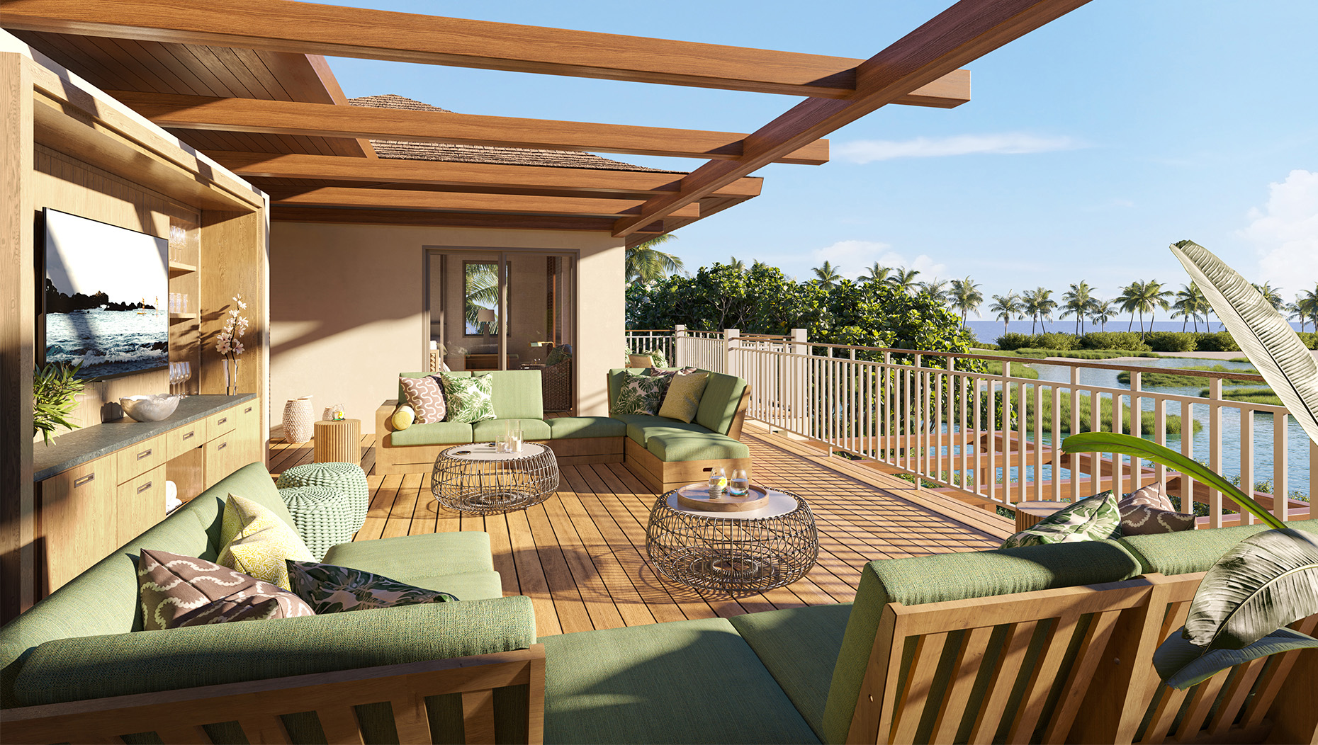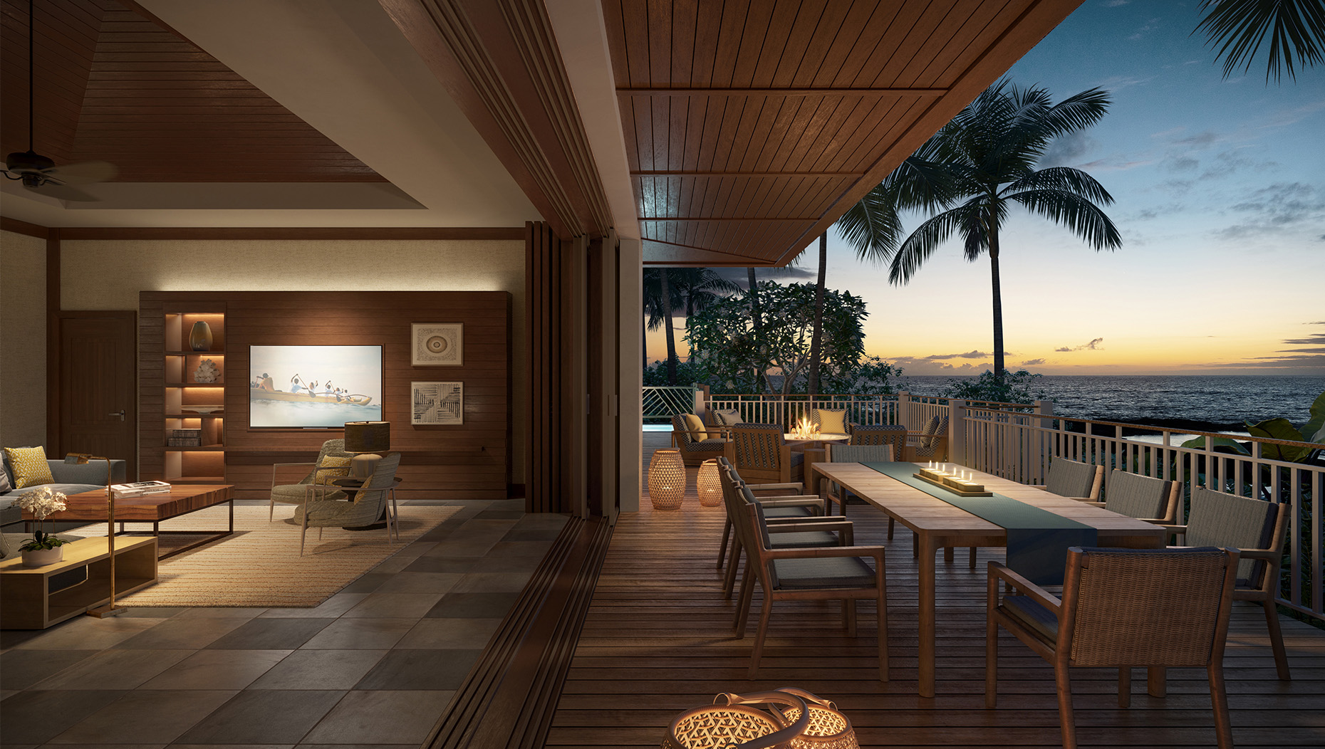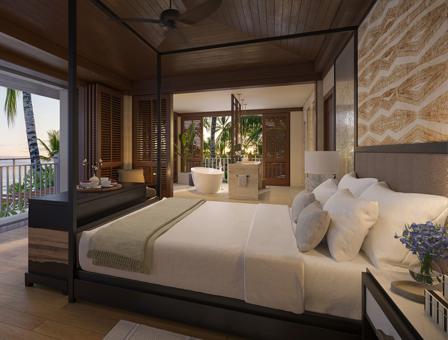 Hawai‘i Loa is a two to four bedroom villa reimagined, from its casually spectacular entrance to expanses of living, dining and, yes, work space. From the spa on the grand lanai, sightlines align with the migratory paths of the humpback. The ground floor master bedroom is a world of its own, with a lava rock shower and sensory delights, and a new second-level master bedroom with indoor and outdoor living space gives visiting guests their own destination. More? There’s sanctuary in two other beautifully-appointed bedrooms. Always, gathering is on the lanai, just in time to enjoy the glow of sunset and the warmth of togetherness.